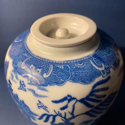 Krukke, Japansk porcelæn te krukke, mærke 3415 bjerget. 3415 i bunden gammel men ingen skår. mål: højde med låg 10 cm, b.11 cm, d. 11 cm, rigtig fin og dekorativ.
