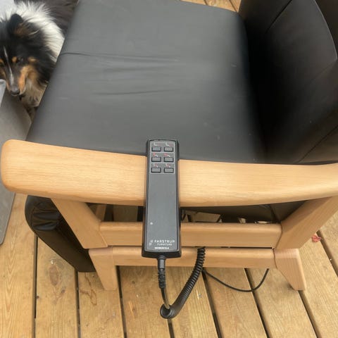 Flot og funktionel lænestol med fjernbetjening til at sænke ryglæn, hæve sædet for hjælp samt fodstøtte. Super flot design. Læs evt mere om stolen her: