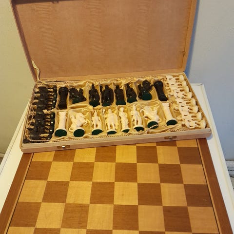 Brættet har fået nogle skader, som er limet efterfølgende. Det fremstår brugt, men i fin stand.