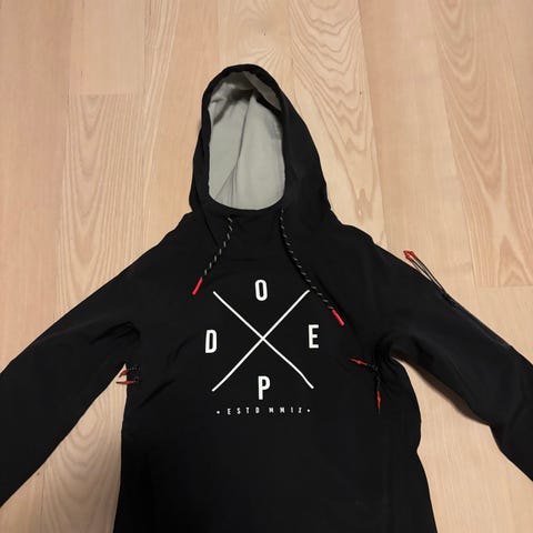 Dope Jakke til herre i størrelse M. Den er sort og lavet af polyester. Den har hætte og er egnet som udendørs beklædning.