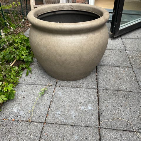Polystone krukke med en højde på 39 cm i brun farve. Velegnet til indendørs eller udendørs brug til planter.Palmen følger med