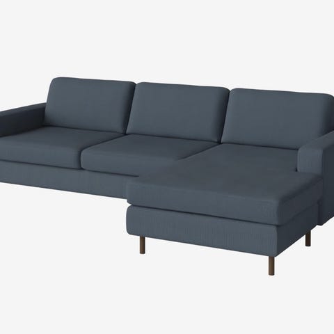 Smukkeste blå grå chaiselong i slidstærkt og rengøringsvenligt stof. Stof på hynder og puder kan aftages og vaskes i maskine.