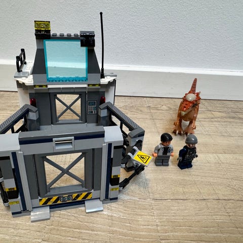LEGO Jurassic World legetøj med tema fra Jurassic World. Indeholder figurer og dinosaur, samt en indhegning og tilbehør til leg.