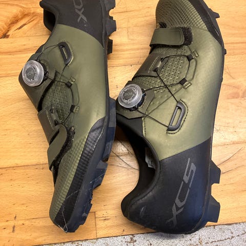 Gode stive cykelsko med Carbon sål, til gravel eller mtb. Brugt et 1 år tid og har så ligget på hylden siden, da de er lige på det mindste til mig. Størrelsen er 45,5 og i skoen står der shxc901m