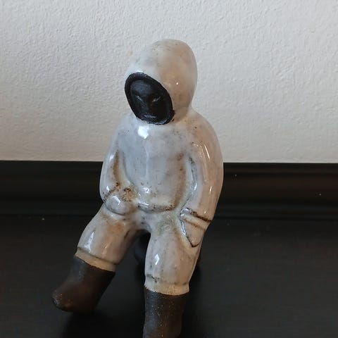 Sjælden Inuit keramik figur. Grønlandsk jæger. Stemplet og signeret i bunden.