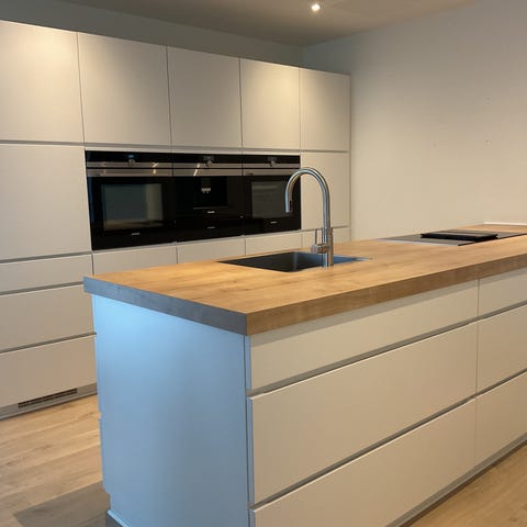 Kombi-ovn medfølger ikke, da den skal re-etableres i det nye køkken.