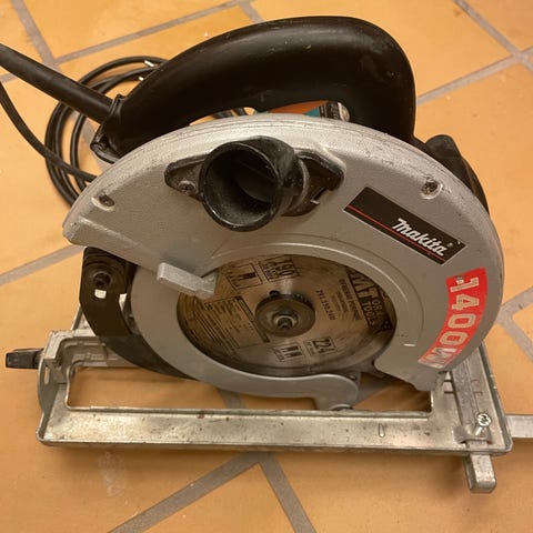 Makita 5704R rundsav med en klinge på 190 mm og en effekt på 1200 W. Den er ikke blevet brugt særligt meget og nu skal den videre. Super fin maskine i flot stand