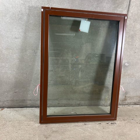 Topstyret vindue i træ/alu med 3-lags satin mat energirude og friskluftsventil. Der er udfræst not i top og bund for lysning og bundstykke. Er lidt beskidt.