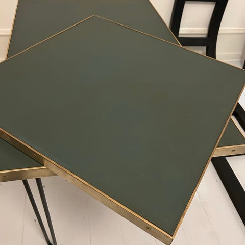 Linoleum bordplade i grøn, med messing lister