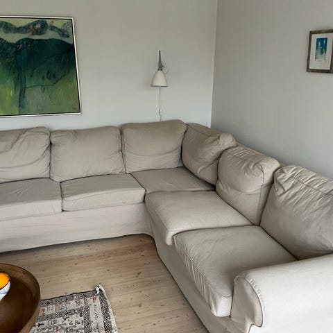 Sofaen har stået i en stue er blevet brugt få gange og er som ny