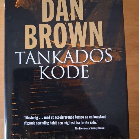 Dan Brown Tankados Kode bog. Bogens indhold omhandler en spændingsroman med elementer af mysterium og kodeknækning.
