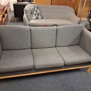 2x Scandinavian upholstery K375 Sofa (former Kragelund furniture Anton sofa) in a light Grey and Dark Wood legs.