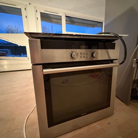 Siemens ovn med varmluft. Vi er i gang med sammenlægning af to lejligheder og skal derfor af med den ene ovn. Ovnen har brugsspor, men trænger nok mest af alt til en klud og lidt knofedt.