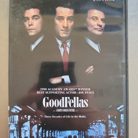 GoodFellas DVD film med Robert De Niro, Ray Liotta og Joe Pesci. Indeholder ekstra materiale og er i standard DVD-format.