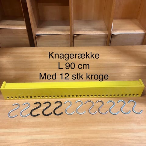 Knagerækken eller krogskinnen foldes ud af det smukt formede træhus efter behov.