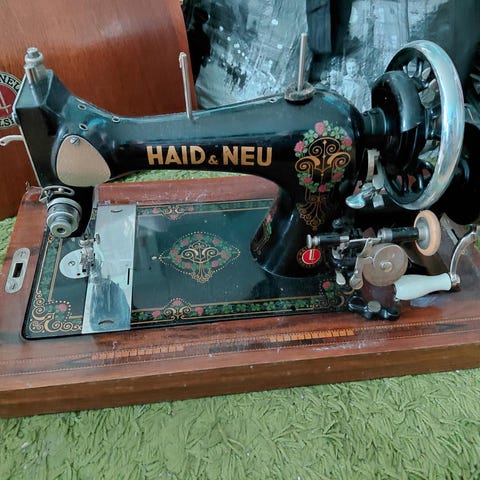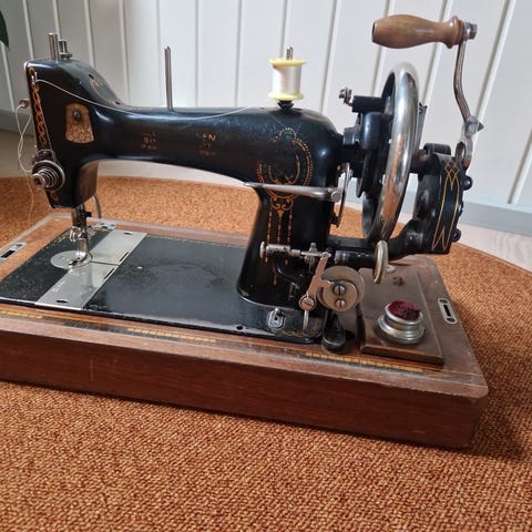 Jeg kender ikke alderen på denne maskine, men der er tale om en ekstrem smuk og top kvalitet maskine. Der medfølger ikke pedal, hvorfor den ikke er testet. Pris sat herefter.