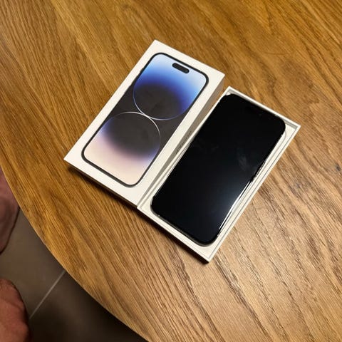 Apple iPhone 14 Pro smartphone med 512 GB lagerplads. Enheden har en sort farve og leveres med et cover. Batterikapaciteten er målt til 76% af den oprindelige kapacitet. Modelnummer: MQ1M3QN/A.