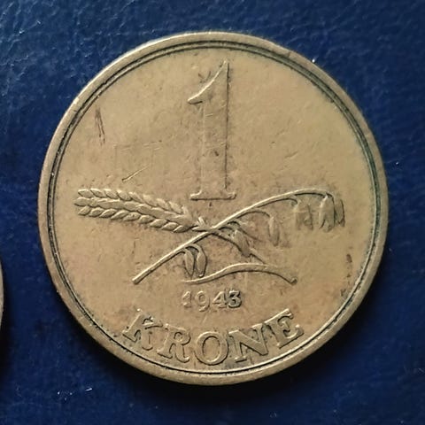 1 KR KRONE 1924 - Christian X KM#824 Den Sværeste! 1 Krone 1924 - 1941 Christian X Aluminium-bronze • 6.5 g • ø 25.5 mm KM# 824. Sendes med track/trace til 45kr.