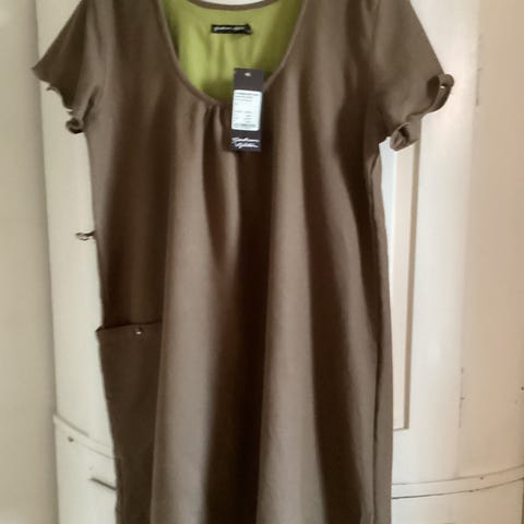 Olivengrøn hør/bomuldskjole fra Gudrun Sjödén, xxl