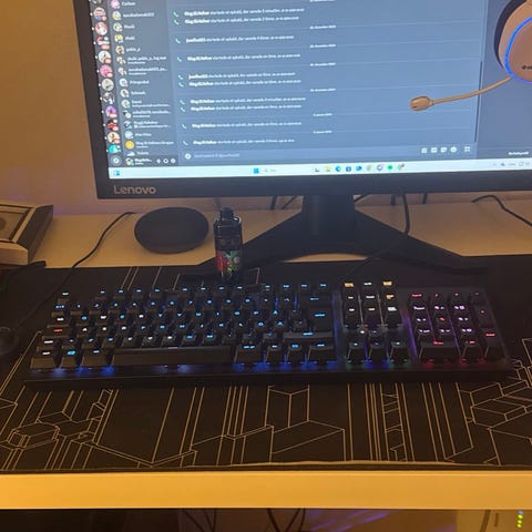 Lækkert tastatur som har været brugt i nogle måneder. Er kommet til at rykke knappen "S" med hele switchen af. Måske en haj kan lodde en ny på eller lignende.