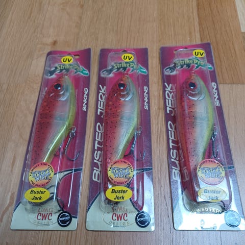 3 stk gedde agn, de 2 håndlavede er store. Fast pris og kun samlet salg. 300 kr.