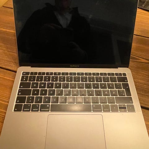Velfungerende MacBook Air fra 2018. Brugt til skoleforløb af mig. Virker upåklageligt. Har et enkelt hak under y tasten og op tasten skal trykkes lidt hårdere end andre taster. Hurtig afhentning prioriteres.