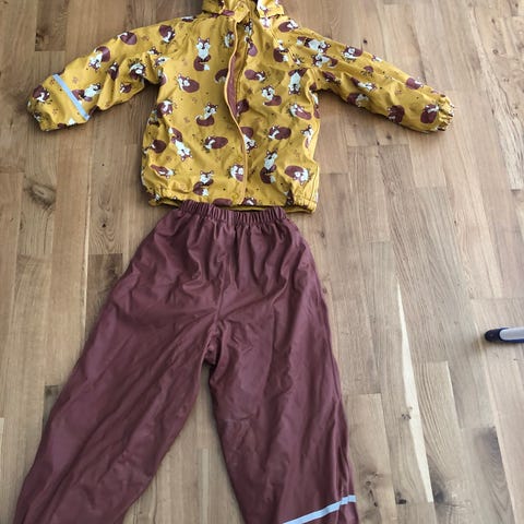 Sættet består af en jakke med hætte og bukser med seler. Materialet er slidstærkt og vandafvisende. Det har refleksdetaljer.,Afhentes i:,Røde Kors Holstebro (661),Bemærk at mail, chat og beskeder ikke besvares, og varen skal købes på knappen "Gå til varen"