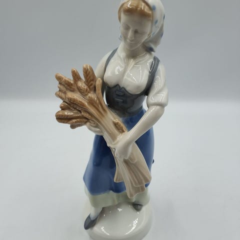 Statuen fremstiller en kvinde med en skål på hovedet. Den er detaljeret og lavet af hvidt materiale.,Afhentes i:,Røde Kors Horsens (615),Bemærk at mail, chat og beskeder ikke besvares, og varen skal købes på knappen "Gå til varen"