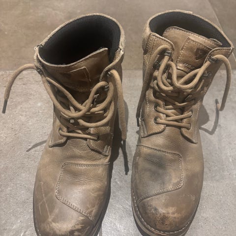 Motorcykel støvler. Er næsten som nye. Har velco og lynlås lukning (som virker),Afhentes i:,Røde Kors Egå (751),Bemærk at mail, chat og beskeder ikke besvares, og varen skal købes på knappen "Gå til varen"