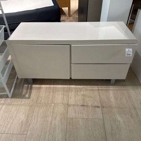 Møblet har en enkel og moderne design med tre skuffer og en åben hylde. Det er lavet af lys træ og har metalhåndtag.,Afhentes i:,Røde Kors Kolding (621),Bemærk at mail, chat og beskeder ikke besvares, og varen skal købes på knappen "Gå til varen"