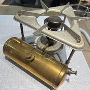 Produktet er en lille, rund kogeblus i metal med en brændstofbeholder og en justerbar låge. Den har en shiny, gylden overflade med en rustik fremtoning og et lille håndtag til nem transport. Lysefarven dominerer.,Bemærk at mail, chat og beskeder ikke besvares, og varen skal købes på knappen "Gå til varen"