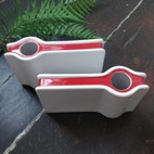 To sjove geometriske vaser i porcelæn, med røde striber i ren 80'er stemning....