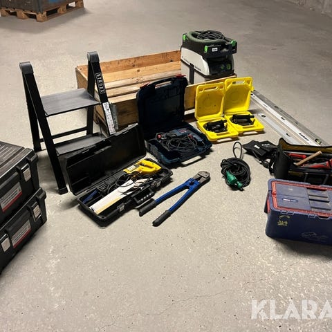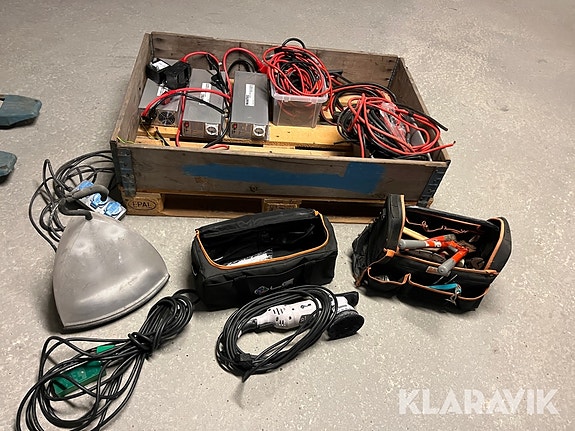 Forlængerledning. Skruestik 2styk.stiksav. Lamper.boltsaks.hulbor.koben.stenklemmer.