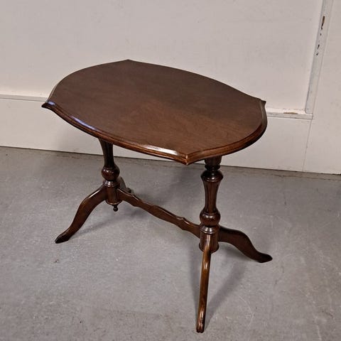 Beskrivelse: Et elegant lille sidebord fra begyndelsen af det 20. århundrede med et rent Art Déco-design. Dens ottagonale form og marquetteringsarbejde gør det til et raffineret dekorationselement.