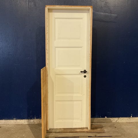 Brugt Gammel Fyldningsdør, træ/træ, venstrehængt, indadgående, hårdttræsbundstykke, mål: H205,3 B72,3 D8 Varenummer: 1664