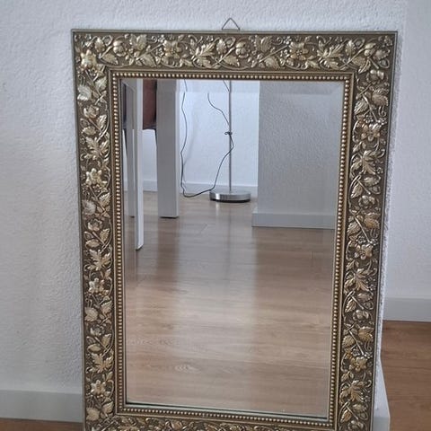 Et stort, tungt facet‑slibet spejl i mid‑century modern stil med møbel i valnøddetræ og glas, 80 cm høj, 60 cm bred, 4 cm dyb, vægt 5,4 kg, oprindelse Holland, periode 1980–1990, i god brugt stand med få tegn på alder og pletter, kan hænges vandret eller lodret. Klik på den blå "gå til varen" knap, for at købe eller byde på denne vare. Den samlede pris vil blive vist inden du afgiver dit bud.