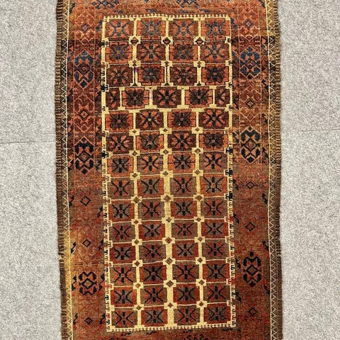 En afghansk antik Belouch-taske, model Antiker Belutsch Tasche Sammlerstück, vævet i uld på uld, 120 × 60 cm, fra begyndelsen af det 20. århundrede, i meget god stand og med ægthedscertifikater. Klik på den blå "gå til varen" knap, for at købe eller byde på denne vare. Den samlede pris vil blive vist inden du afgiver dit bud.