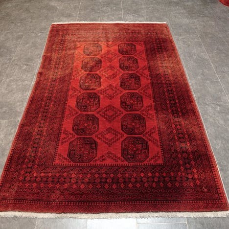 Uld af topkvalitet. Dette tæppe er vævet i Afghanistan med uld af høj kvalitet.