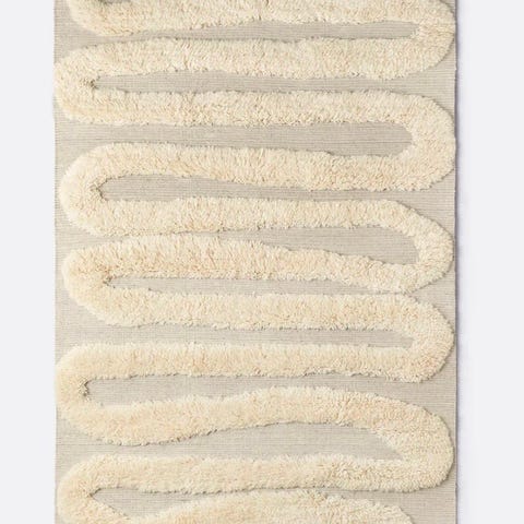 Dette flerfarvede tæppe med geometrisk udformning blev designet i 2022 af Arthur Arbesser for CC TAPIS.