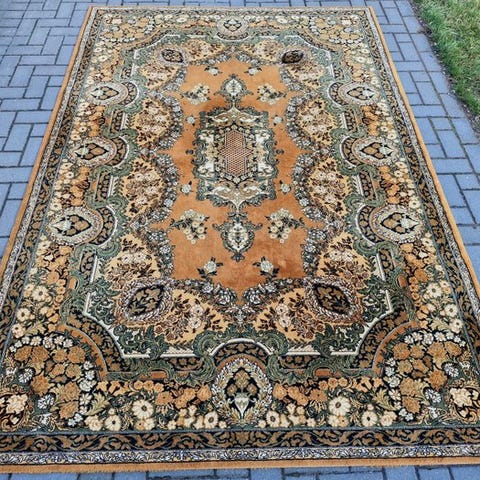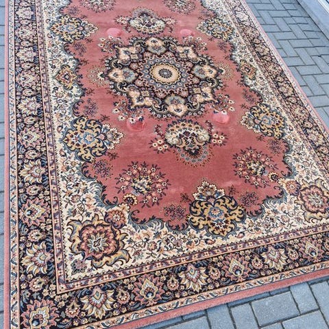 Oprindelse: Europa; Model: maskinvævet oriental klassisk tæppe, målene ca. 195 × 308 cm, uld på bomuld, fremstillet i slutningen af det 20. århundrede, generelt i god stand. Klik på den blå "gå til varen" knap, for at købe eller byde på denne vare. Den samlede pris vil blive vist inden du afgiver dit bud.
