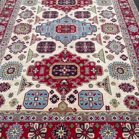 Oprindelsesland: Tyrkiet; Model: Modern Shirwan, håndvævet uldtæppe, rengjort, farverigt, i meget god stand. Klik på den blå "gå til varen" knap, for at købe eller byde på denne vare. Den samlede pris vil blive vist inden du afgiver dit bud.