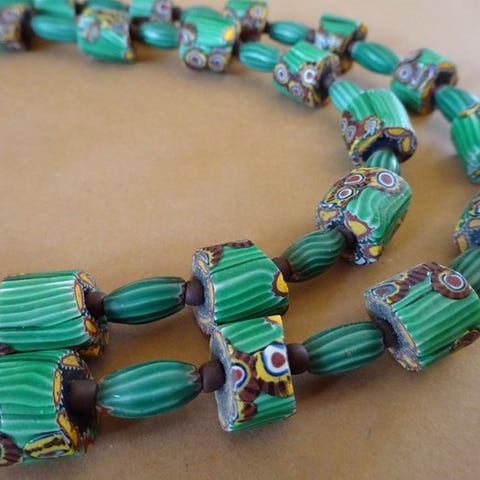 Collier med 2 snore og 54 perler fra Murano, ovalformet, ca. 1920, Ghana