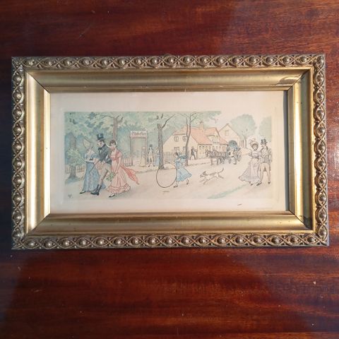 Tilstand: I god stand med lette håndteringsrynker, mindre pletter i kanterne og en lille del mangler i nederste højre hjørne. Billedet ellers meget rent med levende farver. Uden ramme.
