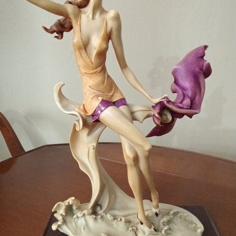 Porcelæns-Capodimonte-skulptur "Sempre insieme" af Florence Sculture d'Arte, Italien, i Art Déco-stil, ca. 1970–1980, mål 34 cm høj, 19 cm bred og 16 cm dyb, i fremragende stand med kun let slitage og aldersmærker. Klik på den blå "gå til varen" knap, for at købe eller byde på denne vare. Den samlede pris vil blive vist inden du afgiver dit bud.