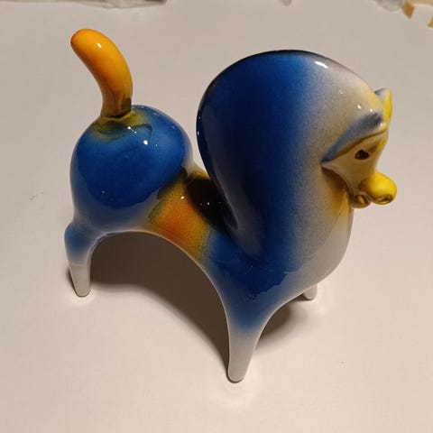 Par af hunde, den ene signeret Girardi, den anden et værk af mesteren Villari Capodimonte; sidstnævnte måler 16 cm i højden, 17 cm i længden og 5,5 cm i dybden. Generelt i god stand.