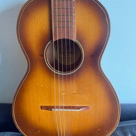 Di Mauro Boogie-Woogie guitar, fransk fremstillet i 1950, model Boogie Woogie, i god stand og testet og fungerer; dimensioner 99 cm længde, 42 cm bredde, 9,2 cm højde, vægt 1 kg. Klik på den blå "gå til varen" knap, for at købe eller byde på denne vare. Den samlede pris vil blive vist inden du afgiver dit bud.