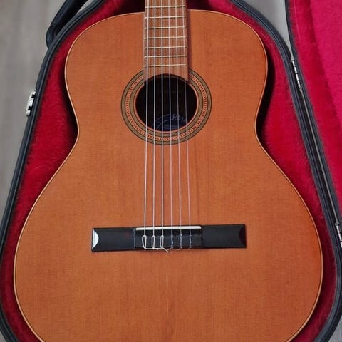 Pragtfuld Di Mauro Boogie-Woogie-guitar fra 1950'erne, ægte fransk instrument fra Di Mauro-brødrenes skole, i den store tradition af jazz manouche-guitarer.