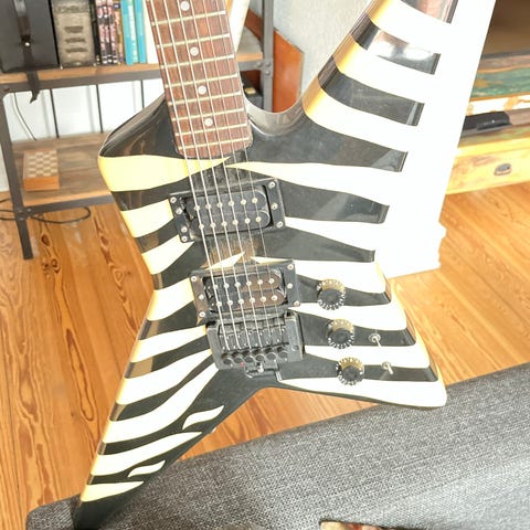 Et lakafslag øverst på halsen, det er ikke en revne (synes mere imponerende på billedet end i virkeligheden: ingen indvirkning på spillet og på det generelle udseende næsten perfekt).