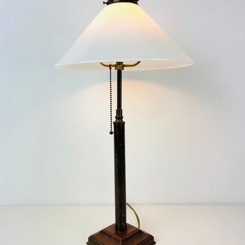 Lampe - Glas, Messing - Klassisk bankierslampe