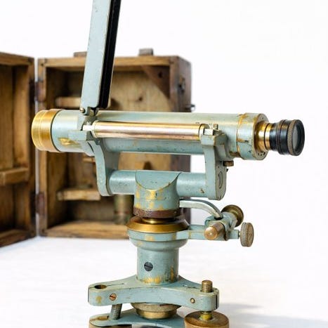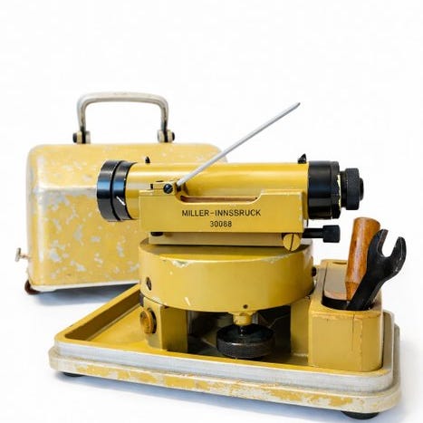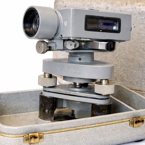 Automatisk optisk nivellør Cowley, fremstillet i England i 1950’erne–1960’erne. Dette landmålerinstrument af høj præcision var beregnet til nivellering og fastlæggelse af vandrette planer. Det er udstyret med et linsebaseret optisk system med automatisk kompensator, og har en krop af tekstureret støbt aluminium med sort læderhåndtag. Mærkepladen nævner adskillige internationale patenter (Storbritannien, Canada, Indien osv.). Leveret med sit originale læderetui, som viser brugsspor som følge af alderen.
